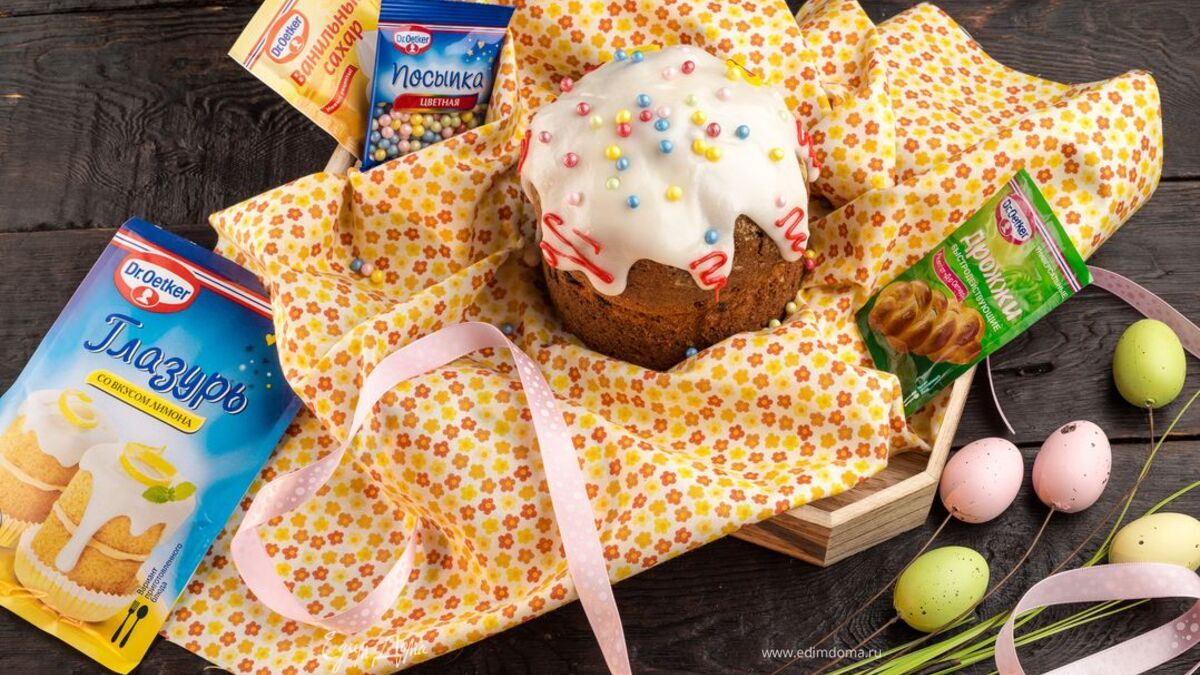 Покройте кулич глазурью и, не дав ей остыть, украсьте разноцветными жемчужинами Dr. Oetker. - Шаг 10