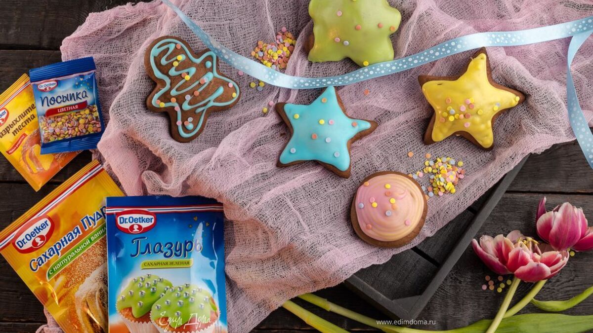 Пока глазурь не остыла, украсьте печенье цветной посыпкой Dr. Oetker «Конфетти» для яркости и хорошего настроения!