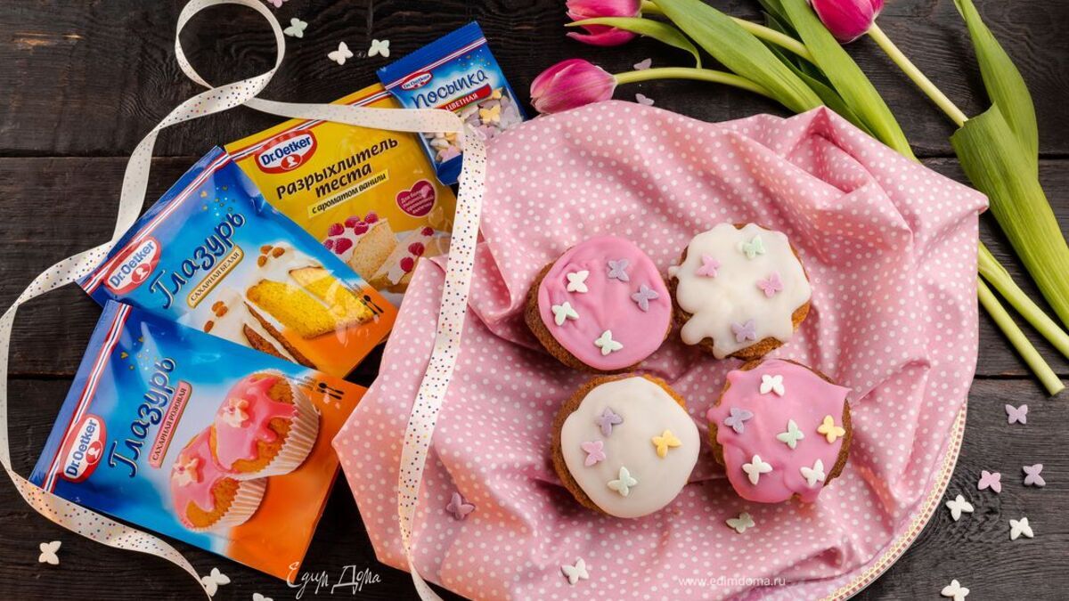 Пока глазурь не застыла, посыпьте поверхность маффинов посыпкой Dr. Oetker «Бабочки». - Шаг 10