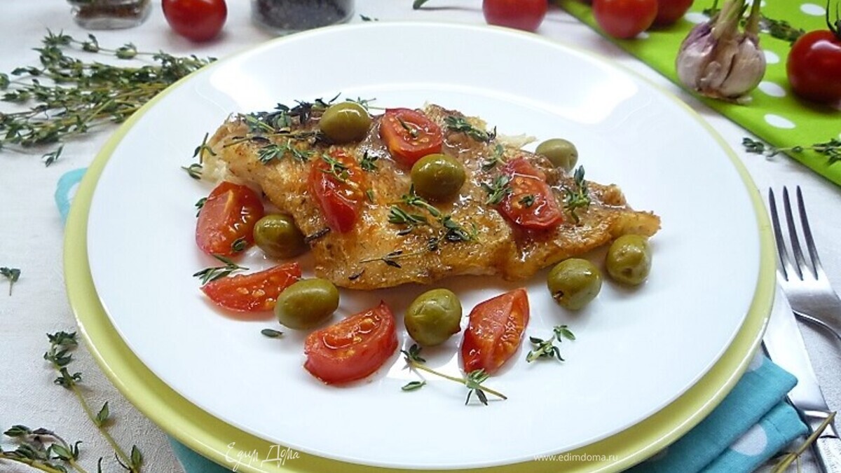 Вкусная, нежная диетическая рыба с румяной корочкой и пикантной ноткой свежего тимьяна, оливками и помидорами черри обязательно придется по вкусу всем членам семьи, готовить ее быстро и просто, можно подать на ужин с любым гарниром.