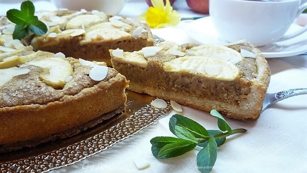 Ароматный и безумно вкусный тарт соберет за столом всю семью. Воздушный крем с миндалем, пралине и яблоком, обрамленный нежным тестом сабле не