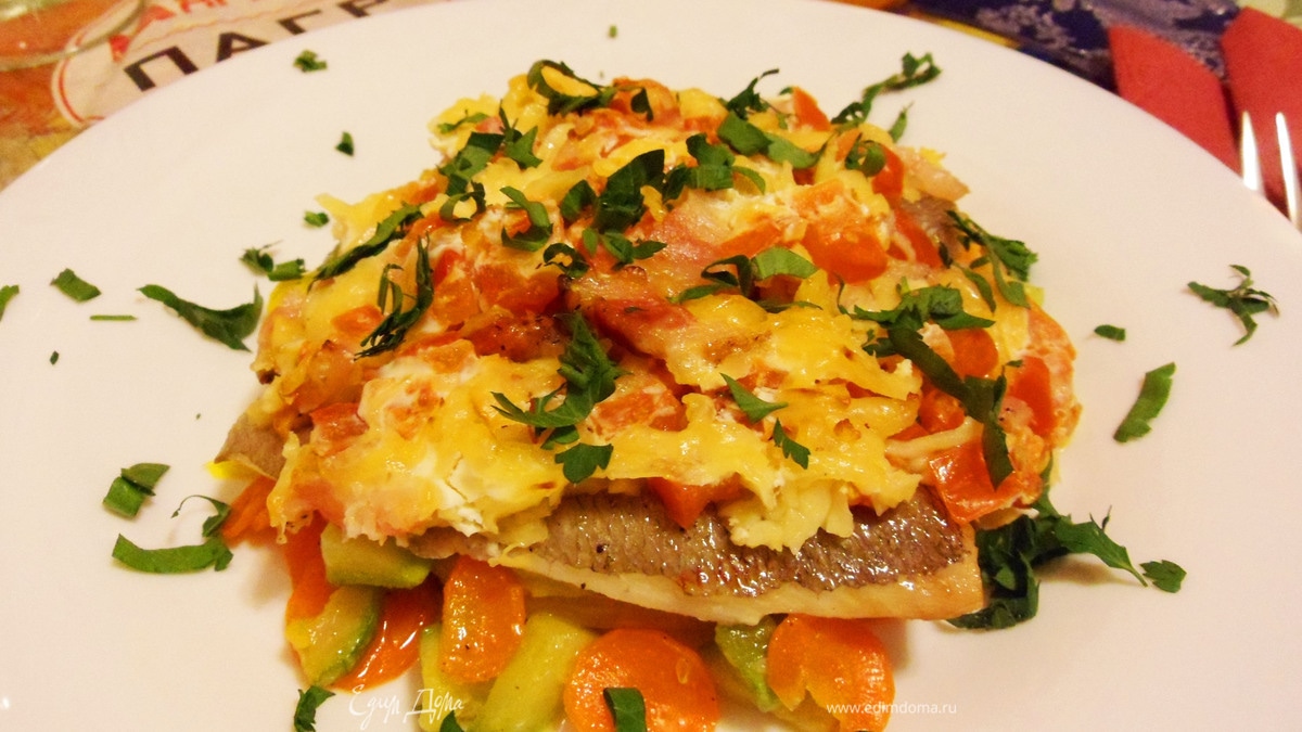 Это блюдо можно было бы назвать и просто «Рыба по-чилийски», потому что рыба должна быть просто белой. У меня тоже белая рыба — пагр от ТМ «Магуро». Пагр (морской карась, розовая дорада) — не просто вкусная и полезная рыба, это настоящий деликатес от ТМ «Магуро». Запеченная рыба, основа из овощей, сырная корочка — все просто, вкусно, гармонично. А еще пагра называют «рыбой любви», считается, что блюдо из него — идеальный ужин для влюбленных. И что немаловажно, блюдо красивое и низкокалорийное. Приятного аппетита!