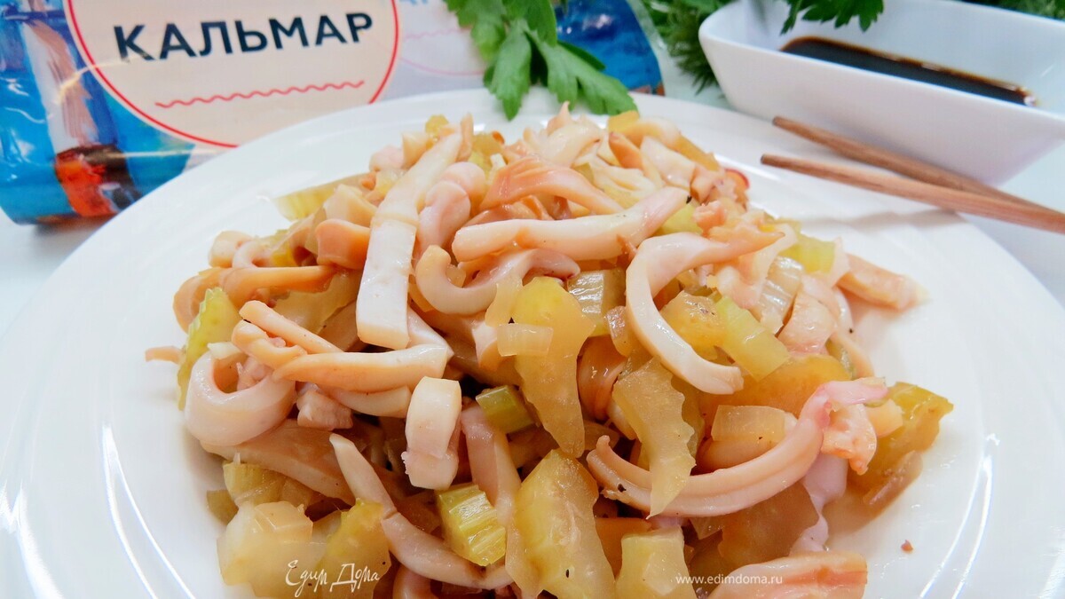 Кальмары по-китайски с имбирем и сельдереем