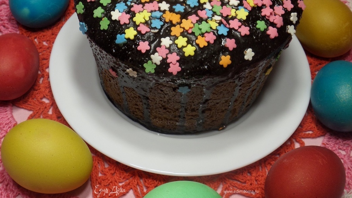 Покрываем куличи глазурью или шоколадом. Так как я готовила два кулича, то соответственно один кулич покрыла ванильной глазурью, а другой — шоколадом. Украшаем сахарными посыпками. - Шаг 17