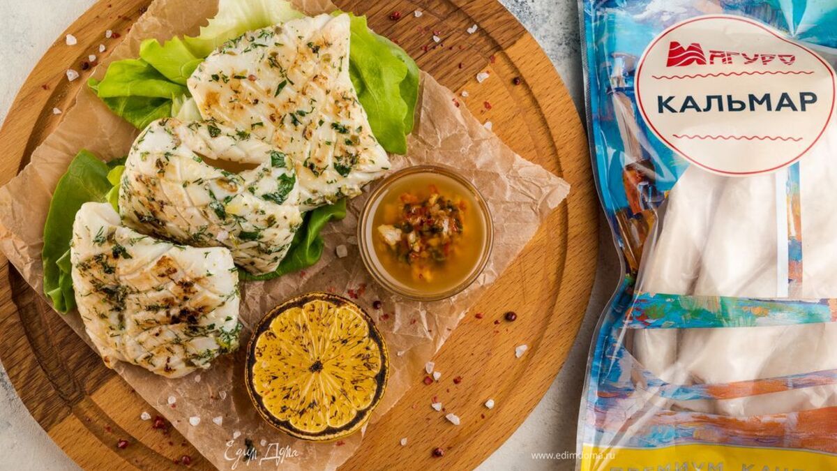 Кальмары на гриле с соусом