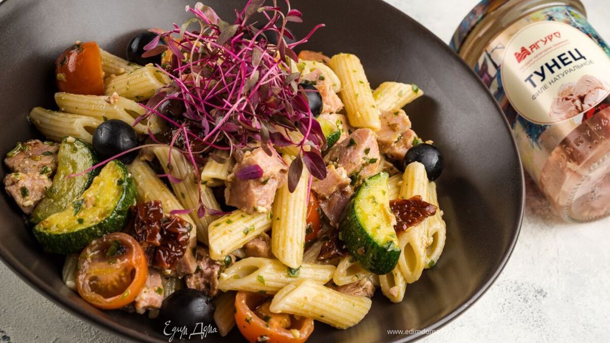 Паста с овощами и тунцом