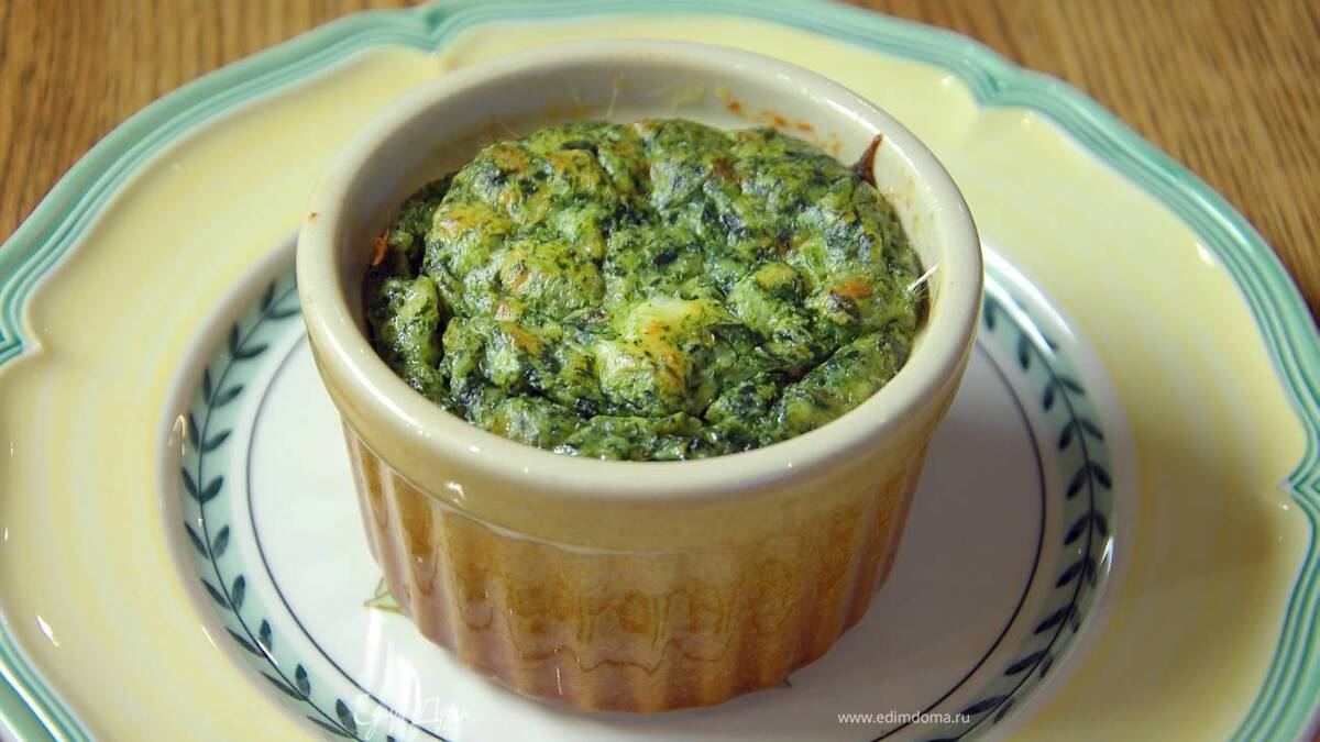 Небольшие керамические формочки смазать сливочным маслом, разложить в них морковную массу, сверху массу из шпината и поставить в глубокий противень. - Шаг 9