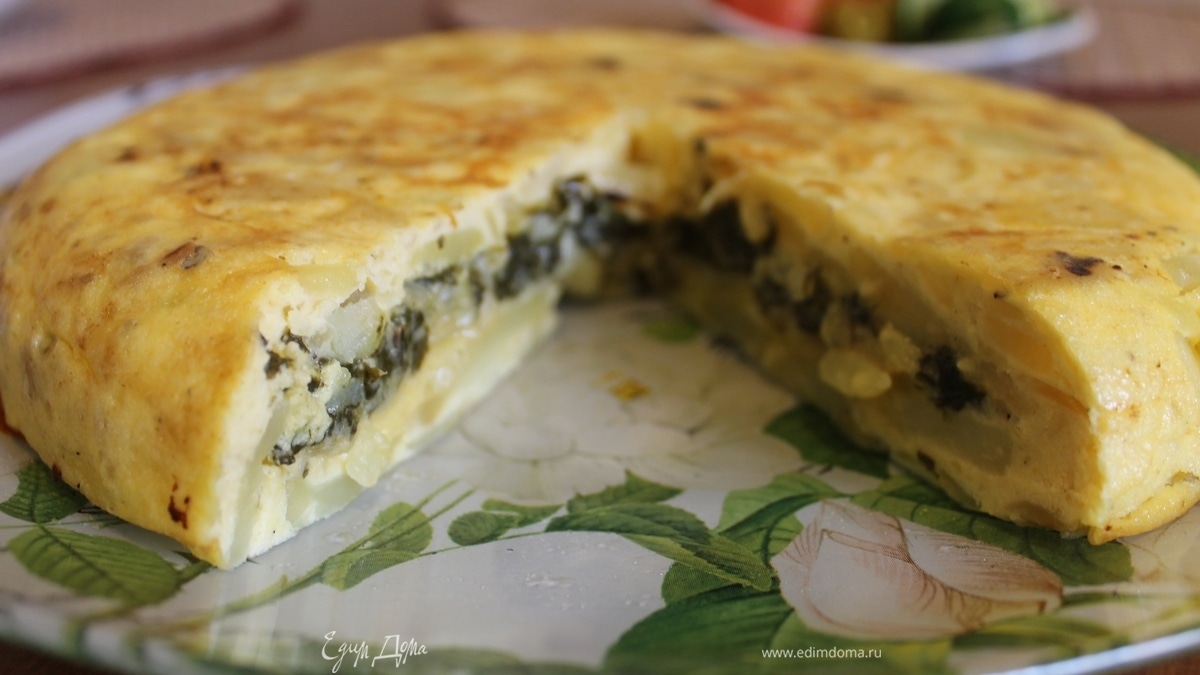 Половину картофельной массы выложите на сковороду. Сверху разложите начинку из шпината и закройте оставшимся картофелем. - Шаг 6
