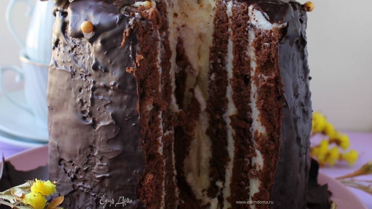 Торт получается мягким, с нежным кремом из творожной массы и манки. Он прекрасно подойдет для праздничного стола или просто для домашнего чаепития.