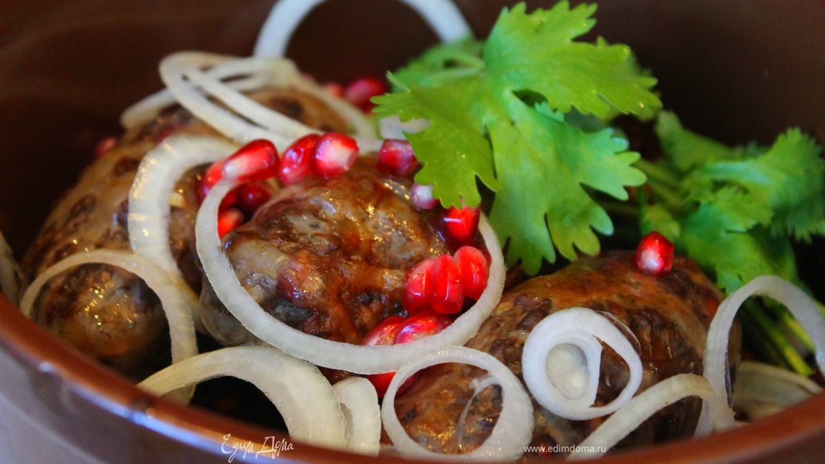 Мелко нарежьте мясо, мелким кубиком нашинкуйте красный лук. Добавьте к мясу нарезанный чеснок, свежесмолотый черный перец, красный жгучий, чабер и раздробленные семена кориандра, не молотые, а именно раздробленные. Все тщательно перемешайте и не забудьте посолить. В конце добавьте стакан гранатовых зерен, аккуратно перемешайте их с мясным фаршем, чтобы они оставались целыми. - Шаг 4