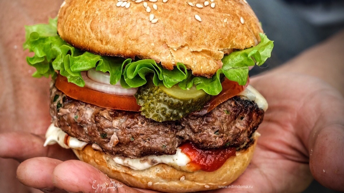 Домашний бургер никогда не сравнится с покупным из ближайшей фастфудной забегаловки! Что является гарантией успеха в приготовлении домашнего бургера? Во-первых, булочки, выпеченные самостоятельно (не покупные!), сочная котлета, соусы, овощи и....непременно веселая компания! Приготовить такой бургер я очень советую на природе - на решетке зажарить котлету и собрать сам бургер прямо на месте! На свежем воздухе в компании любимых друзей такой бургер станет еще вкуснее! Ну а как испечь настоящие булочки для бургера, как сделать фарш для сочнейшей котлеты и как собрать сам бургер я сейчас вас научу.