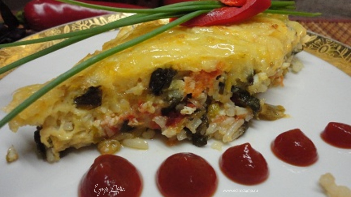 Рецепт из журнала советской эпохи «Работница». Я откорректировала его для размеров тортильницы, на 4 порции. Сюда идеально подошел отборный длиннозерный рис от «Националь».