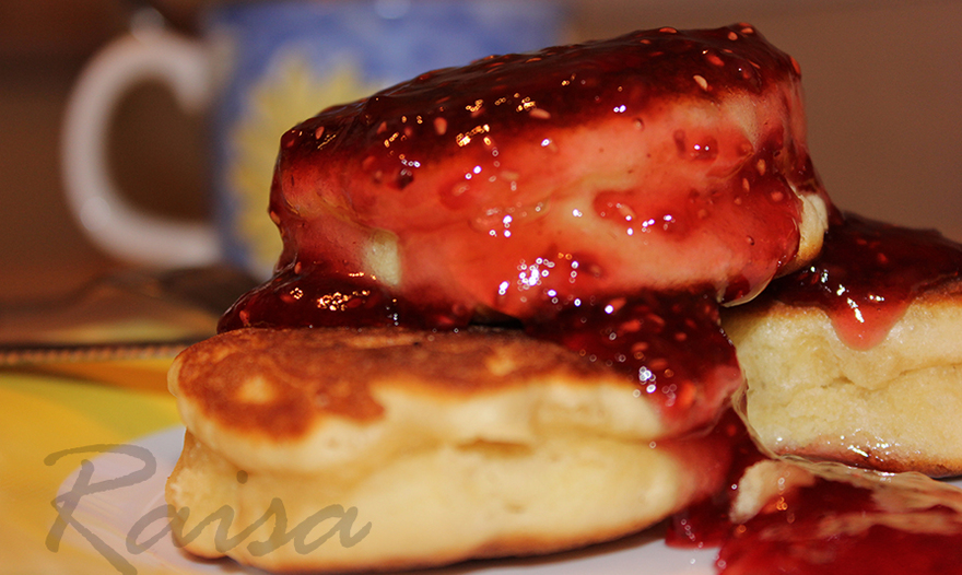 • Панкейки с малиной и сгущенкой