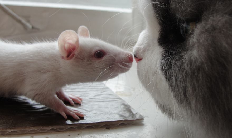Чудные фото! Серый, пузиком кверху, сразил меня на повал :))))) Ну кончено очень тронуло общения этих двух - мышки и кошечки!